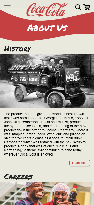 The current Coca-Cola app has bulky sections that take up a lot of real estate, which means less content to fit onto the screen and difficult navigation. The app also lacks product information and accessibility- there’s nowhere to simply view the products they offer. Overall, the app is a clunky news article app that is not user-friendly and limits content consumption.