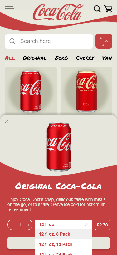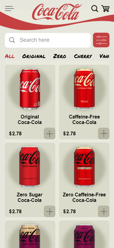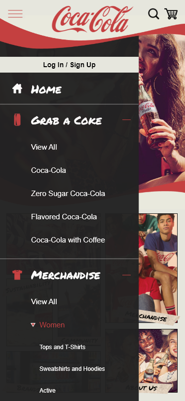 By segregating Coca-Cola’s categories on the home screen, adding an organized hamburger menu and filter menu, and using detailed animations give feedback, users can navigate the smartphone app with efficacy.